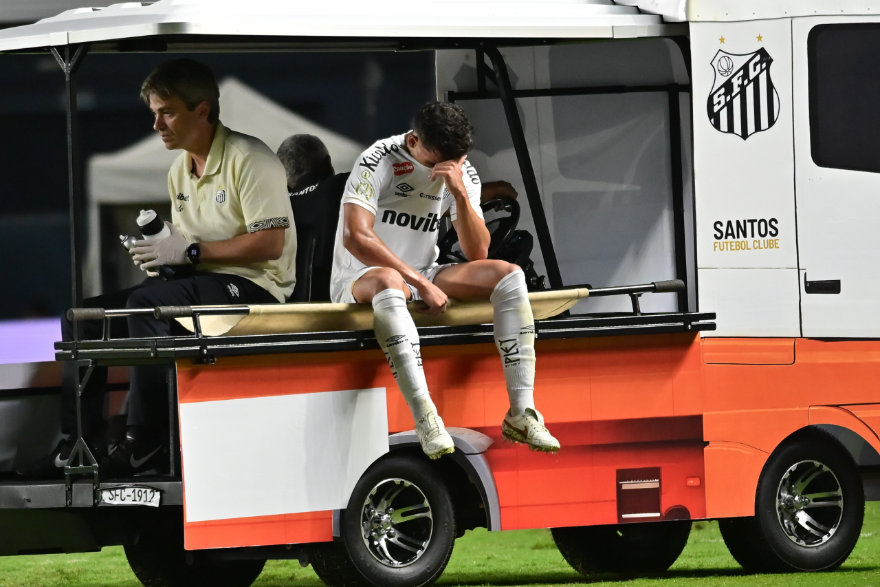 Gustavo Henrique saiu chorando aos 25 minutos de Santos x Coritiba pela Copa do Brasil. Suspeita de lesão muscular; jogador fará exames nesta quinta-feira e preocupa sequência do time.